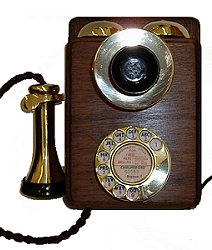 This is an original antique wooden wall telephone housing that has been made to work using remodelled brass components. This style of wall phones was mainly produced between 1911 and 1929. A handsome working telephone. - Rare wall telephone in original wooden housing